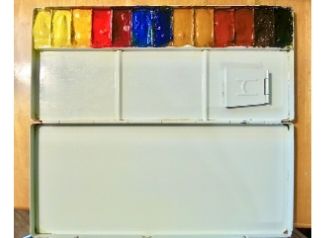 My Holbein 13 well palette holds my 11 colors plus one extra each of the 2 colors I use the most… lemon yellow and raw sienna.